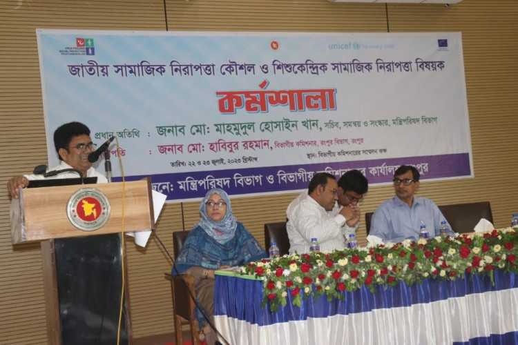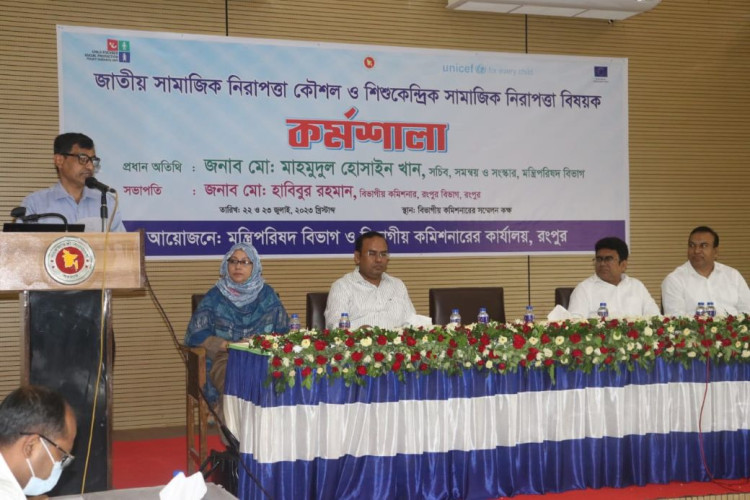 জাতীয় সামাজিক নিরাপত্তা কর্মসূচি বাস্তবায়নের সাথে সংশ্লিষ্ট রংপুর বিভাগের মাঠ প্রশাসনের কর্মকর্তাদের অংশগ্রহণে জাতীয় সামাজিক নিরাপত্তা কৌশল ও শিশুকেন্দ্রিক সামাজিক নিরাপত্তা বিষয়ক দুই দিনব্যাপী কর্মশালা(জেলা ভিত্তিক দু’টি পৃথক ব্যাচে) গত ২২ ও ২৩শে জুলাই ২০২৩ ইং তারিখে বিভাগীয় কমিশনারের কার্যালয়, রংপুর-এর সম্মেলন কক্ষে অনুষ্ঠিত হয়। অনুষ্ঠানে প্রধান অতিথি হিসেবে উপস্থিত ছিলেন জনাব মোঃ মাহমুদুল হোসাইন খান, সচিব, সমন্বয় ও সংস্কার, মন্ত্রিপরিষদ বিভাগ এবং সভাপতিত্ব করেন জনাব মোঃ হাবিবুর রহমান, বিভাগীয় কমিশনার, রংপুর।